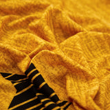- Colors: Mustard yellow, white, black